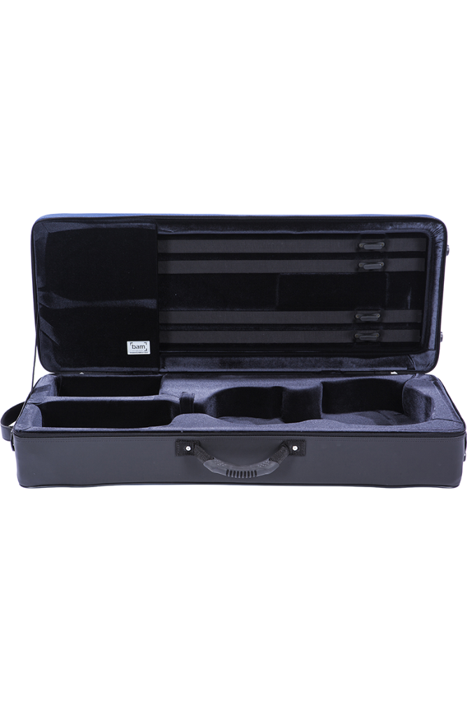 INSIDE FEATURES : Inside cradle made of injected high density polyurethane foam, protecting the instrument against thermal shocks Accessory compartment String tube 4 bow holders